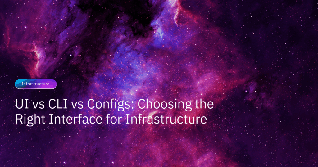 Some teams swear by config files. Others love the speed of the CLI. And some embrace intuitive web UIs that streamline tasks across the board. But the truth is, there’s no one-size-fits-all interface for managing infrastructure. The best choice often depends on context: who’s using it, what they’re doing, and how fast they need to move.